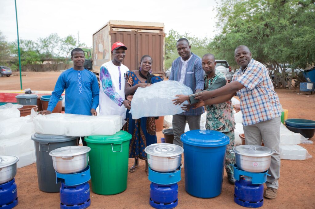 Chaque kit remis contenait notamment des moules, des bassines, de la soude caustique, des huiles végétales, des protections, des bouteilles de gaz, un guide de bonnes pratiques; etc. Loin d’être de simples objets, ces éléments deviennent les leviers d’un changement social profond, portés par l’engagement et le savoir-faire des bénéficiaires.