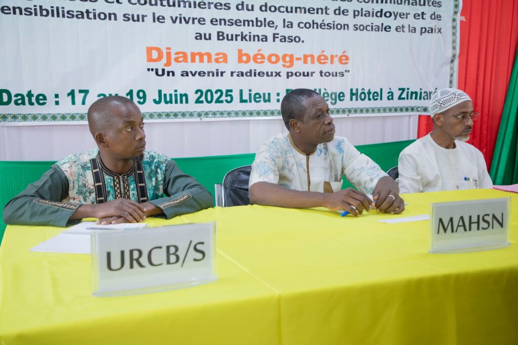 Ziniaré, 17-19 juin 2025 – Dans le cadre du projet « Djama Béog-Néré », l’Union des Religieux et Coutumiers du Burkina pour la promotion de la Santé et du Développement (URCB/SD) s’est réjouie du bon déroulement de la retraite religieuse d’appropriation du document de plaidoyer et de sensibilisation, organisée par l’association Ittihad Islami du Burkina. Pendant trois jours, les leaders religieux et coutumiers de toutes les confessions du Burkina Faso ont échangé en profondeur autour des valeurs communes prônant la paix, le vivre-ensemble et la lutte contre l’extrémisme violent.