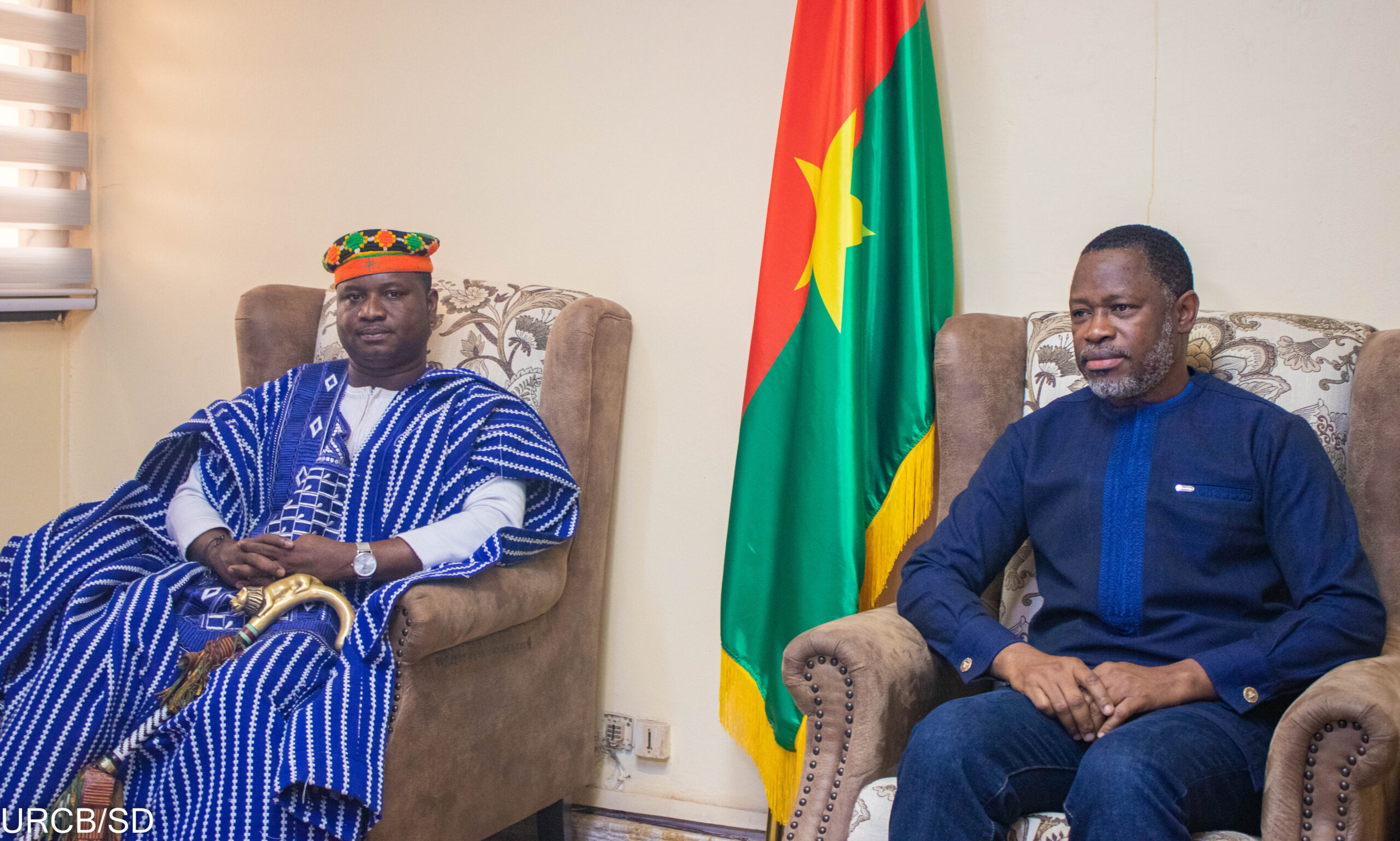Conduite par le Président du Conseil dâAdministration, Naaba Kaongo de Zagtouli, la délégation de lâURCB/SD est allée échanger avec le ministre sur les actions menées par lâorganisation en faveur de la consolidation de la paix et du développement au Burkina Faso.